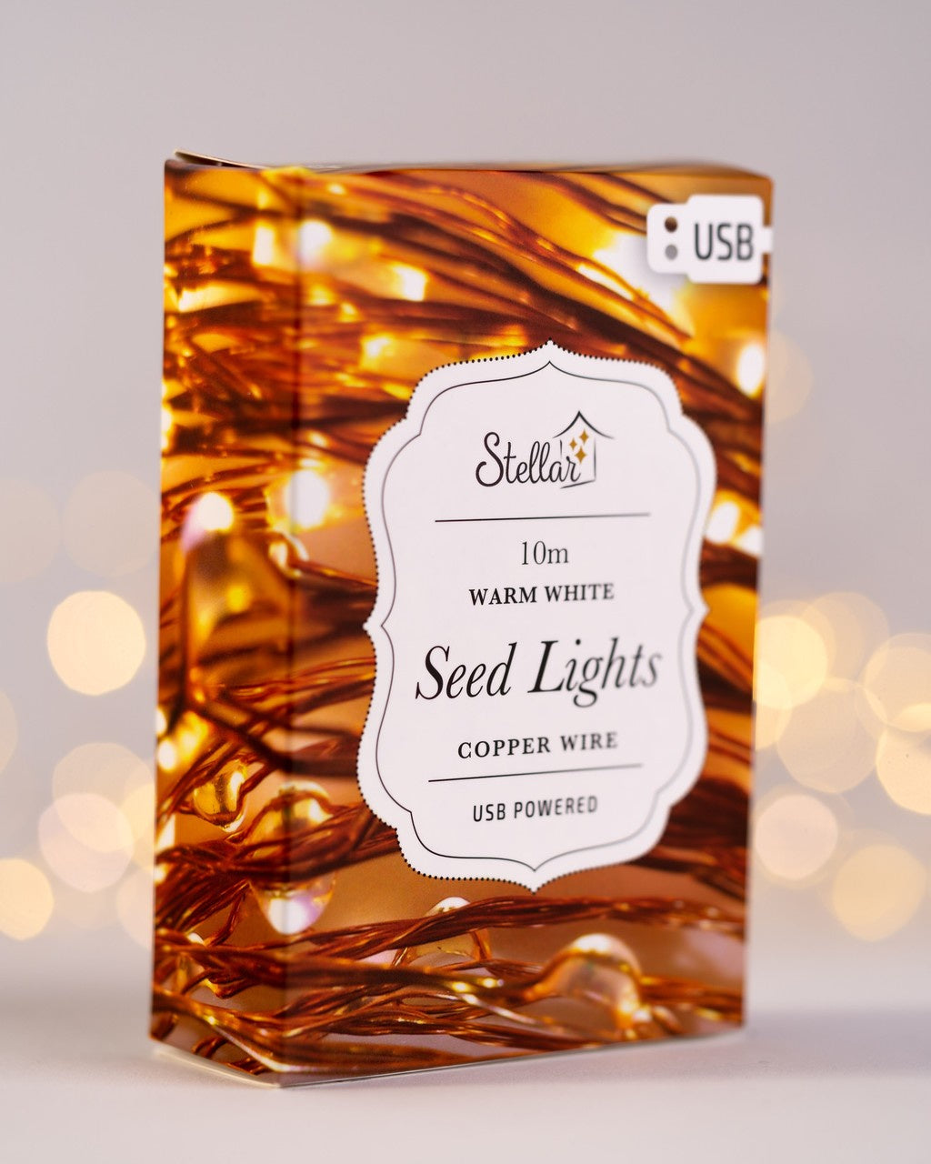 Plug in to any USB power source for instant, versatile seed light twinkles.