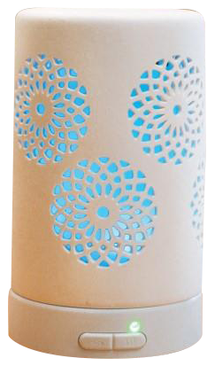 White glazed ceramic diffuser that rotates through 7 colour changes while emitting beautiful essential oil scent.
