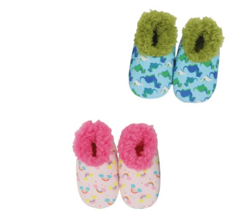 Slumbies are furry and cosy sleepy time foot wear to make feet warm in cold weather. Slumbies are neither slippers nor socks. They are very soft, comfortable breathable and washable. They are light weight with non-slip soles. It is made of 100% polyester.