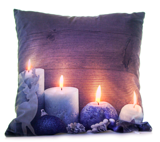 These lovely christmas cushions have a neat trick, they light up! The Candles flicker like they're truely lit.