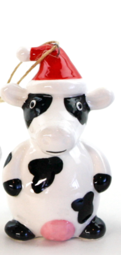 Ceramic Christmas Cow Tree Decoration