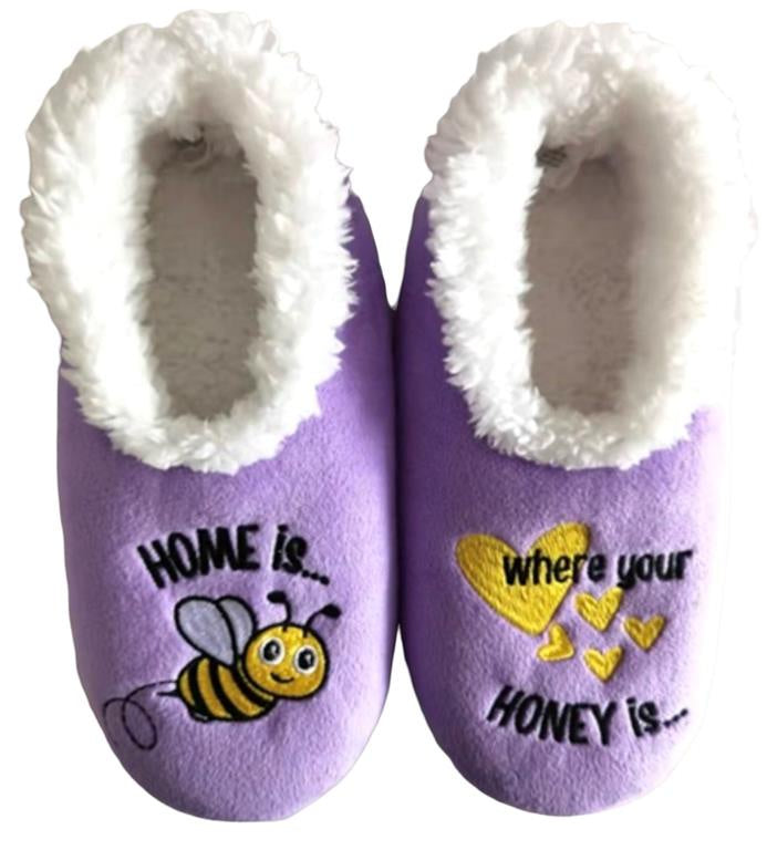 Slumbies are furry and cosy sleepy time foot wear to make feet warm in cold weather. Slumbies are neither slippers nor socks. They are very soft, comfortable breathable and washable. They are light weight with non-slip soles. It is made of 100% polyester.