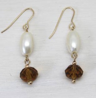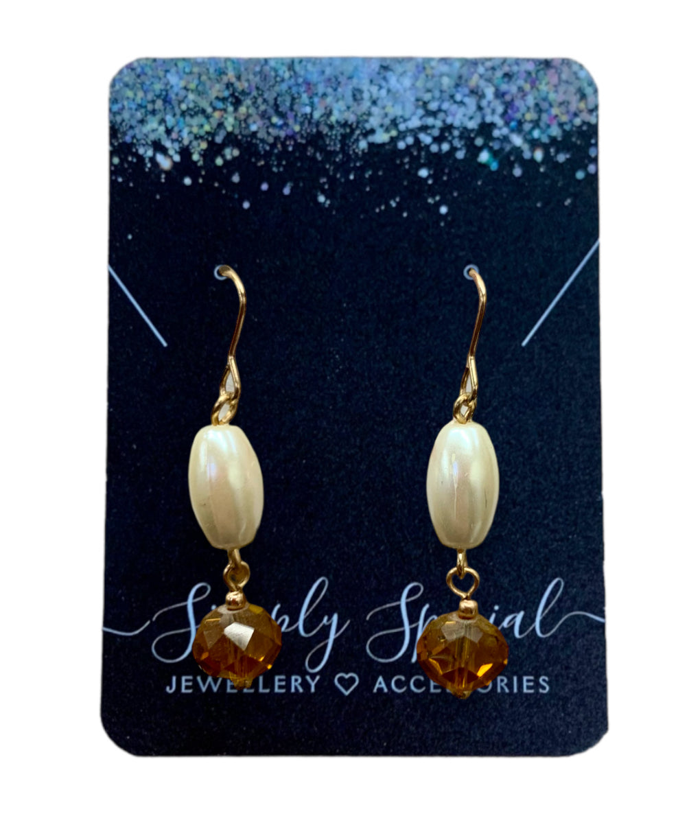 Pretty pearl and amber earrings, prefect length (not too long, not too short)